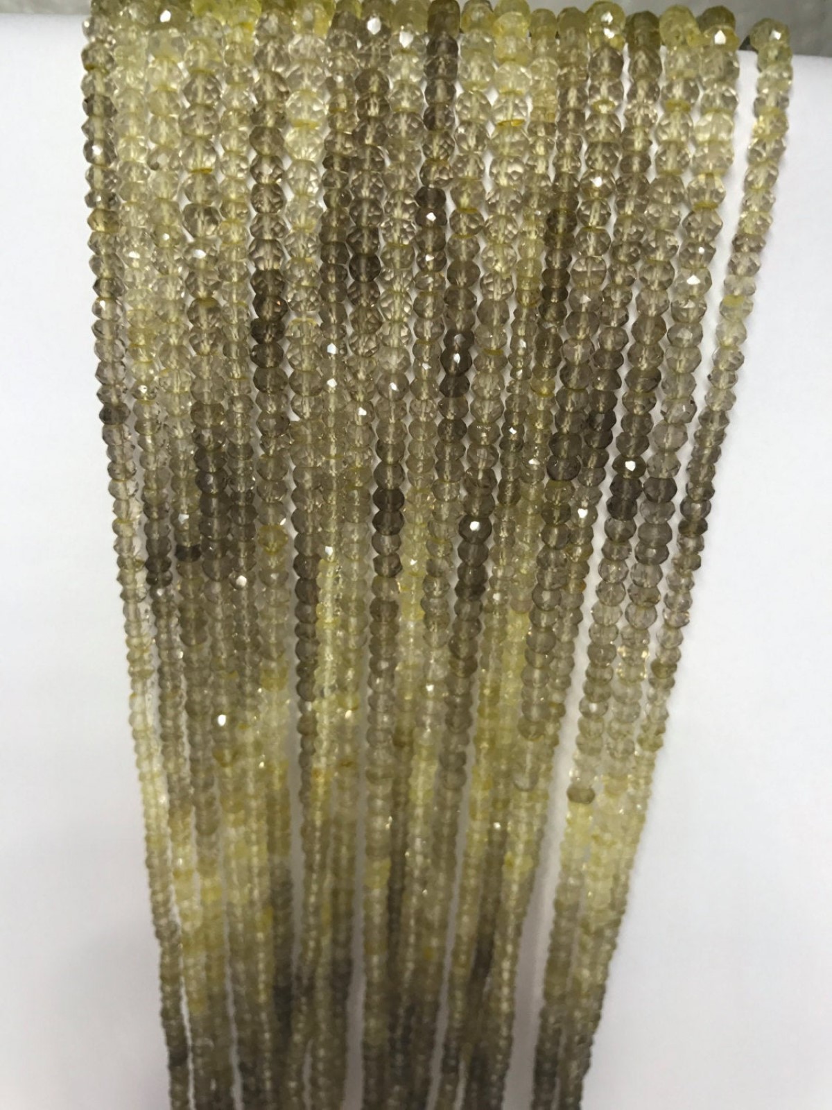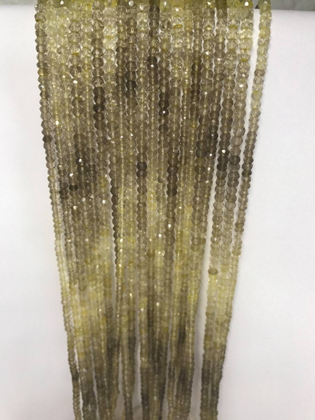 1 Strand Lemon Quartz Shaded faceted Gemstone Rondelle beads 3-4mm 13" Strand