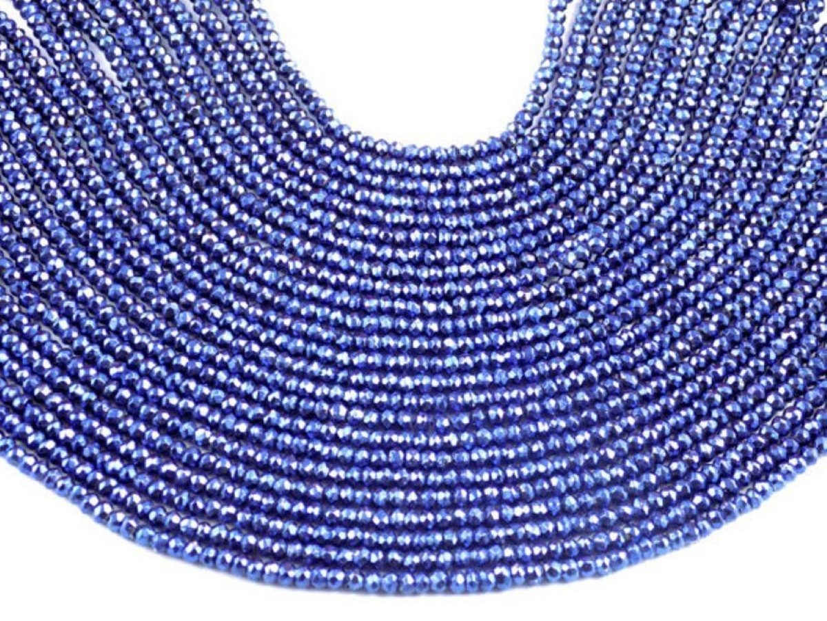This Listing is for 1 Strand Blue Sapphire Pyrite Gemstone Micro Faceted Rondelle Beads Measure 3.5-4mm - 13" Long.