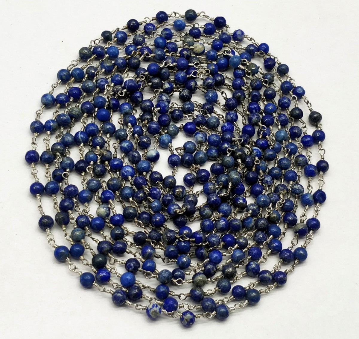 At a Great Price100% Top Quality 10 Feet Rosary Beads Chain Lapis Lazuli 4-5 mm,Round & Smooth Silver Plating. SE177