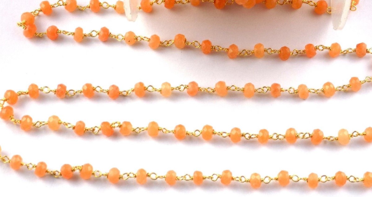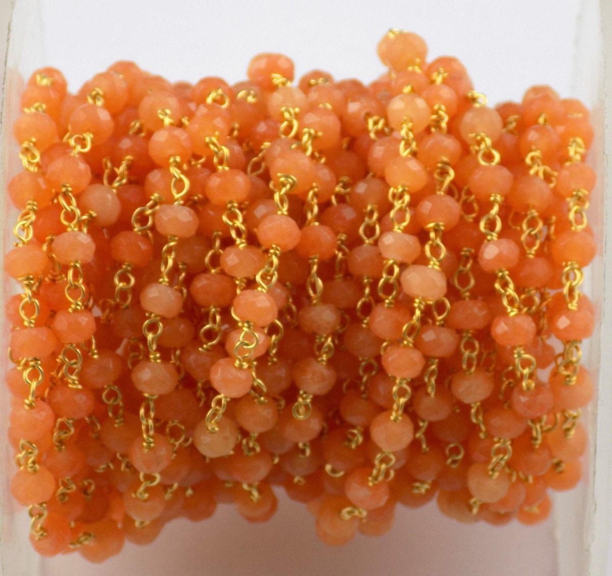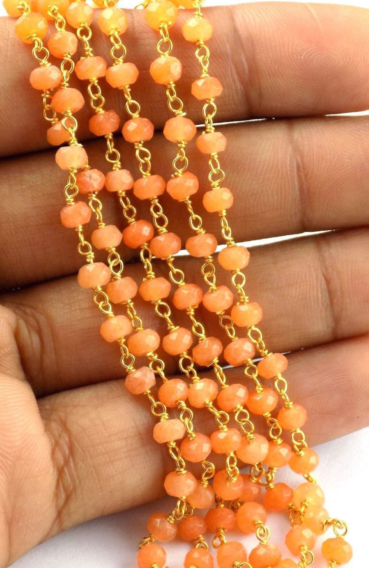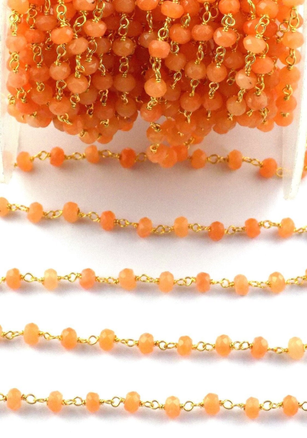 At a Great Price3 Feet Orange Chalcedony Gemstone Faceted Size 4mm 24k Gold Plated Rosary Chain
