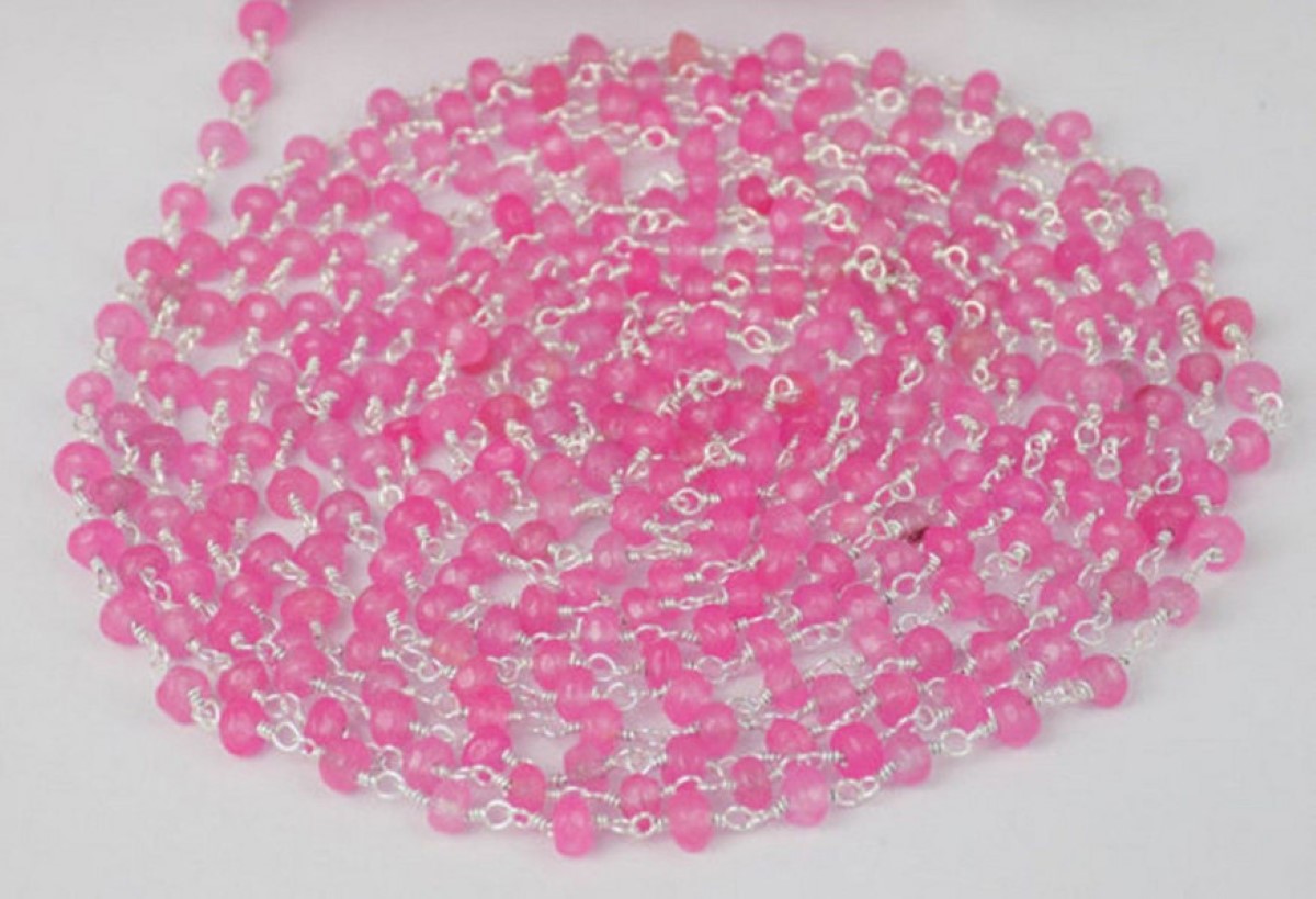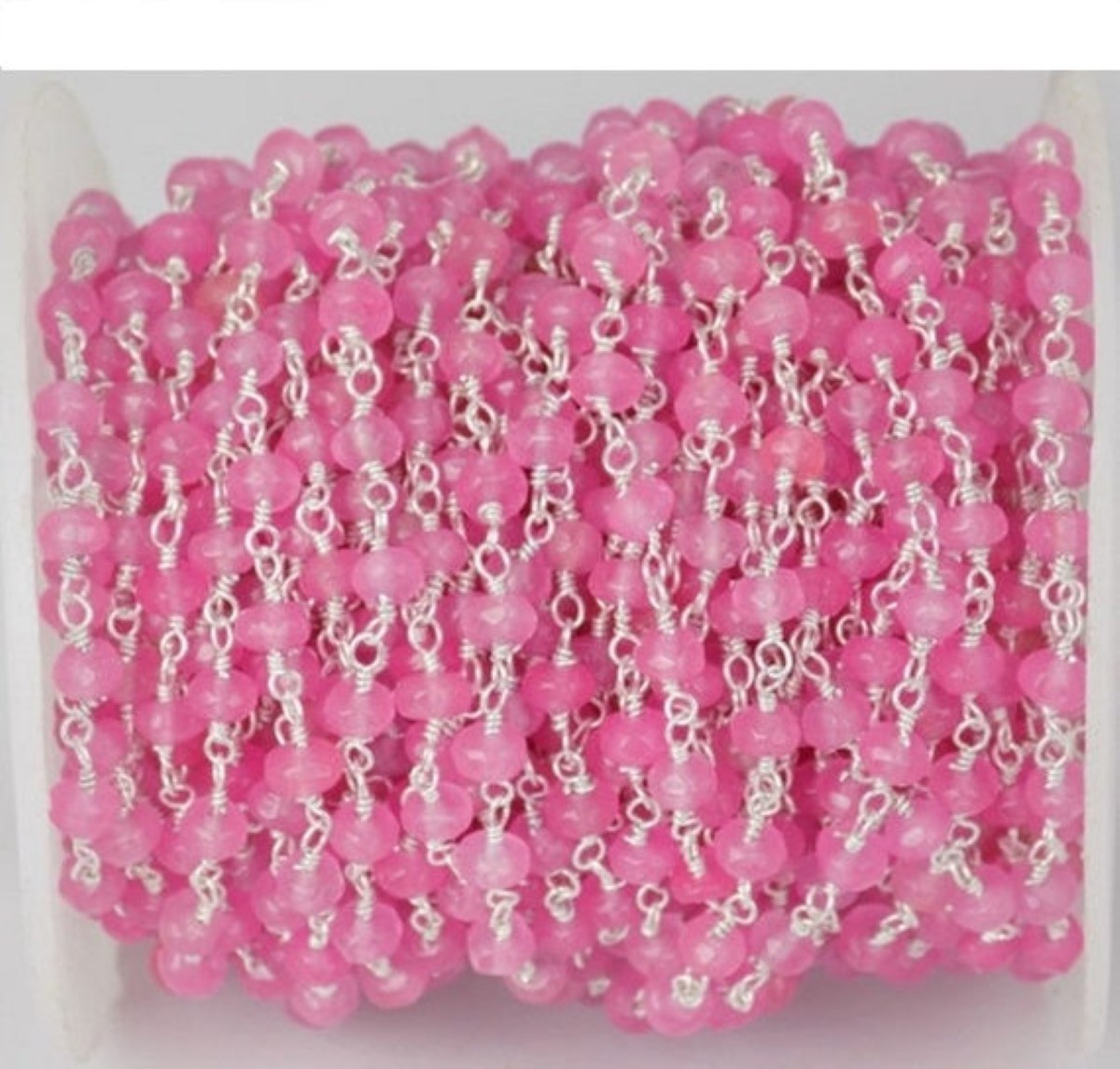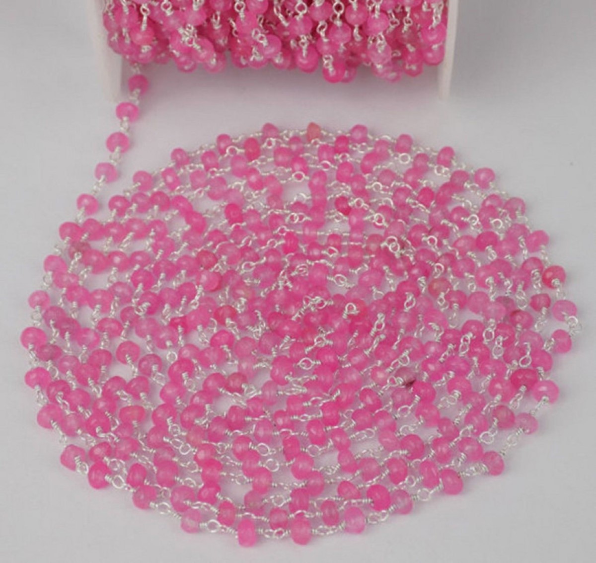 This Listing is for 3 Feet Rose Quartz Chalcedony Faceted Beaded Chain 925 Silver Plated 3.5-4mm.