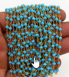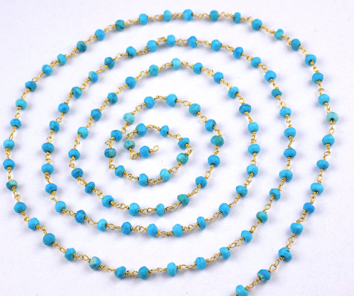 This Listing is for 3 Feet Synthetic Turquoise 3-3.5mm Faceted Rondelle 24k Gold Plated Wire Wrapped Beaded Chain.