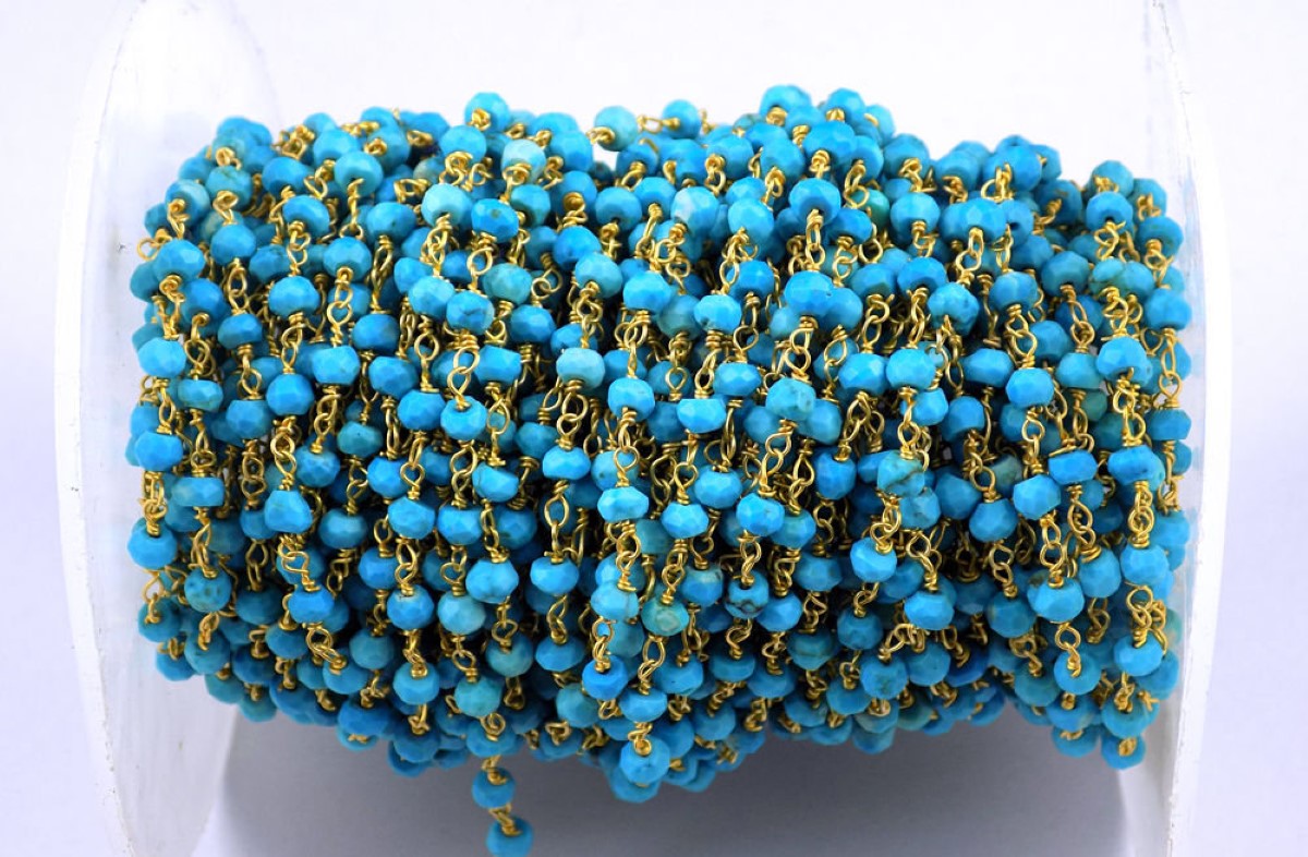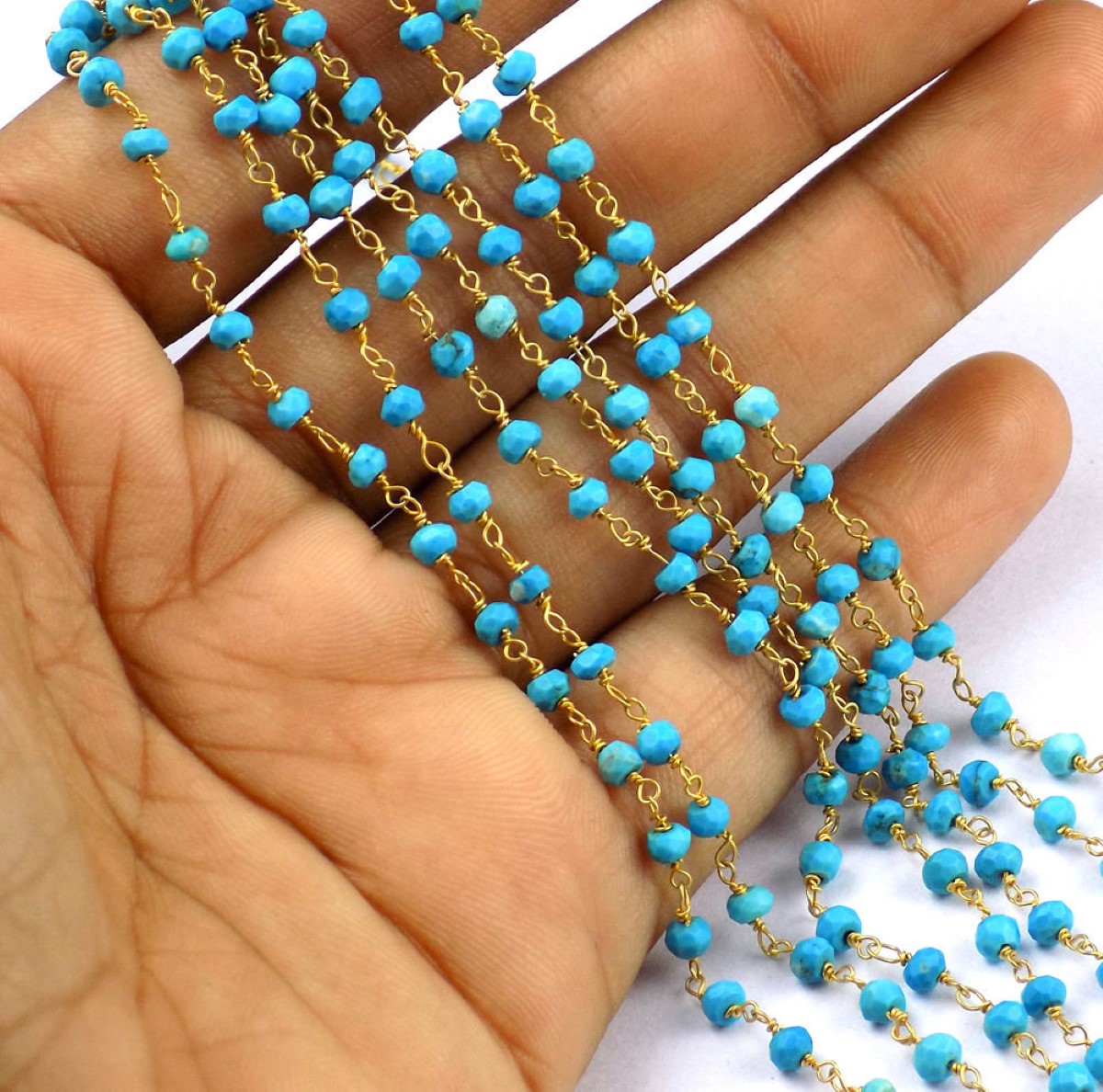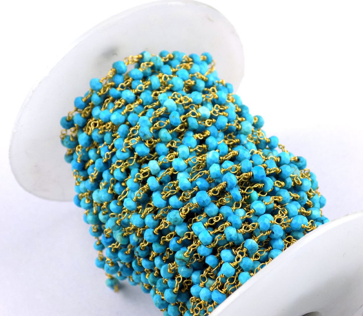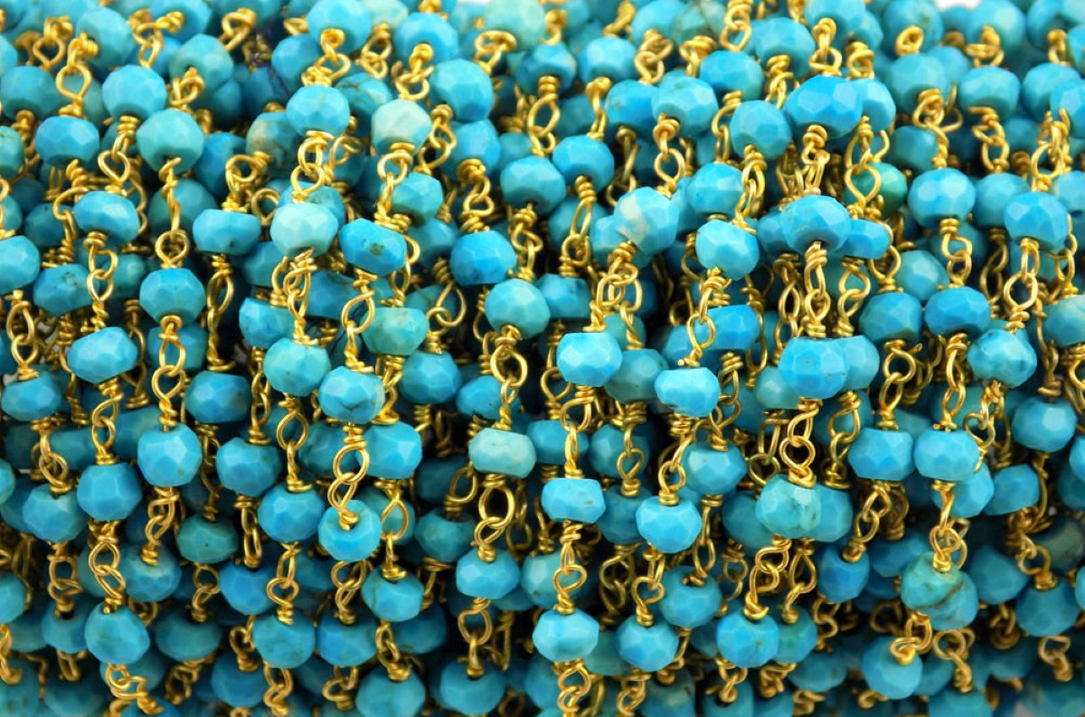 At a Great Price3 Feet Synthetic Turquoise 3-3.5mm Rondelle Faceted 24k Gold Plated Beaded Chain, Wire Wrapped Beaded Chain, Rosary Bead