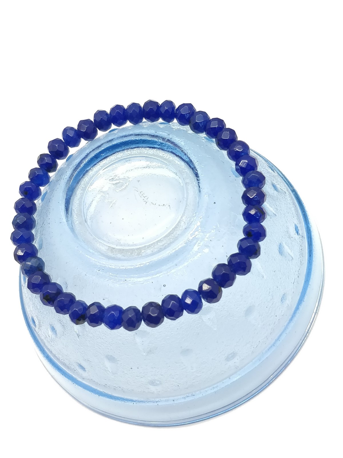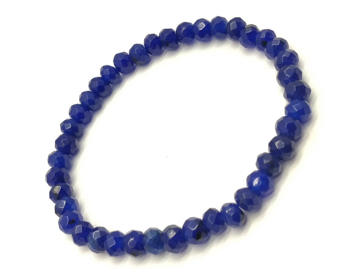 Crafted with 40 5.5-6mm blue jade beads, this bracelet has a chic and stylish feel. The rondelle and faceted design add depth, making it perfect for everyday wear.