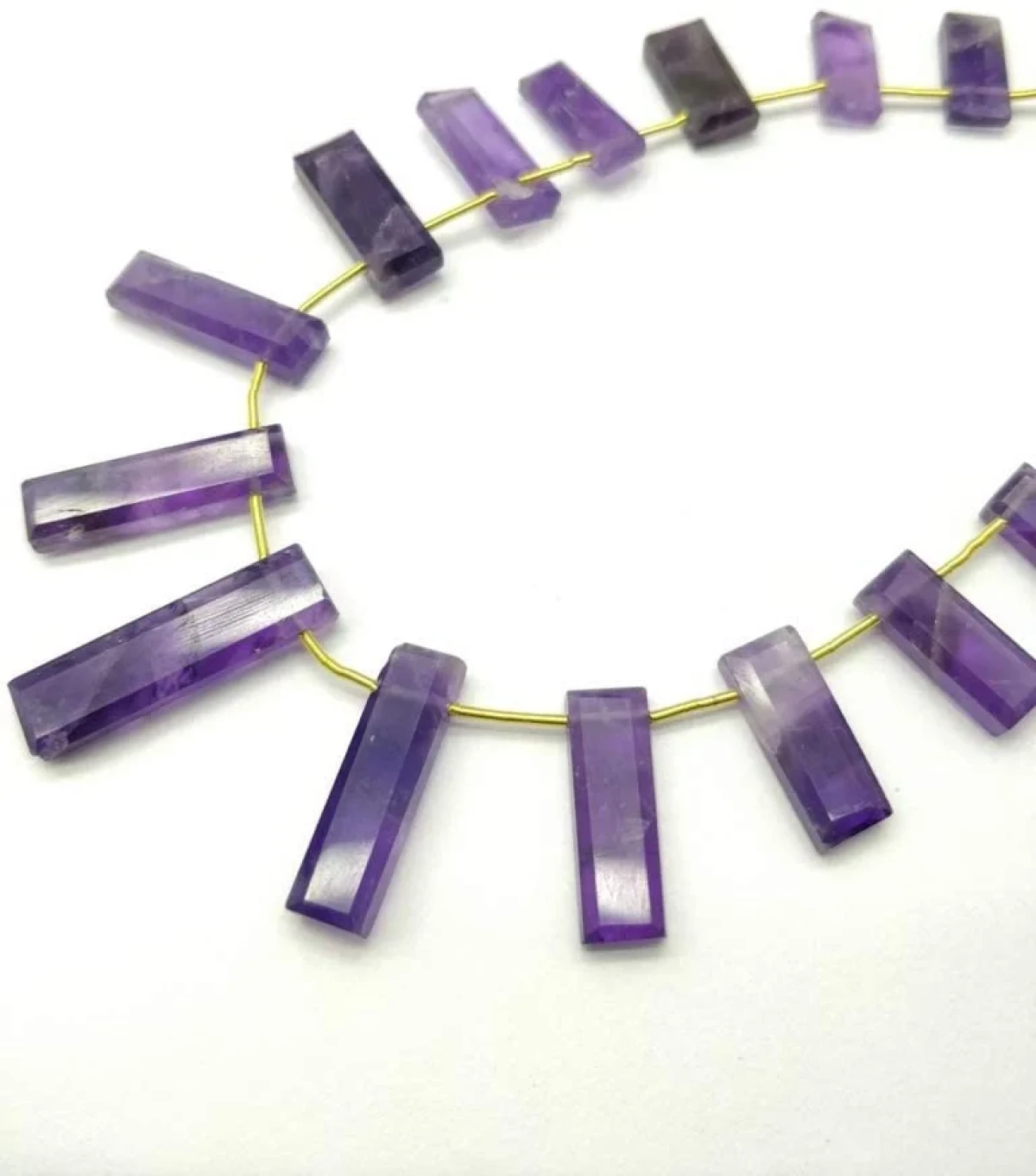 The color of these amethyst beads is absolutely gorgeous! The deep purple is mesmerizing, and the rectangle shape gives them a unique, modern look. The faceting catches the light beautifully, making them a perfect addition to any design.