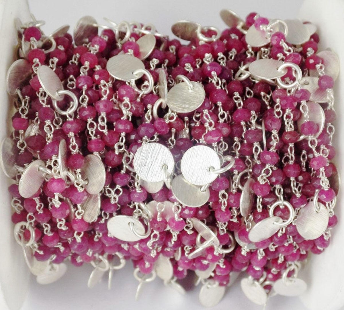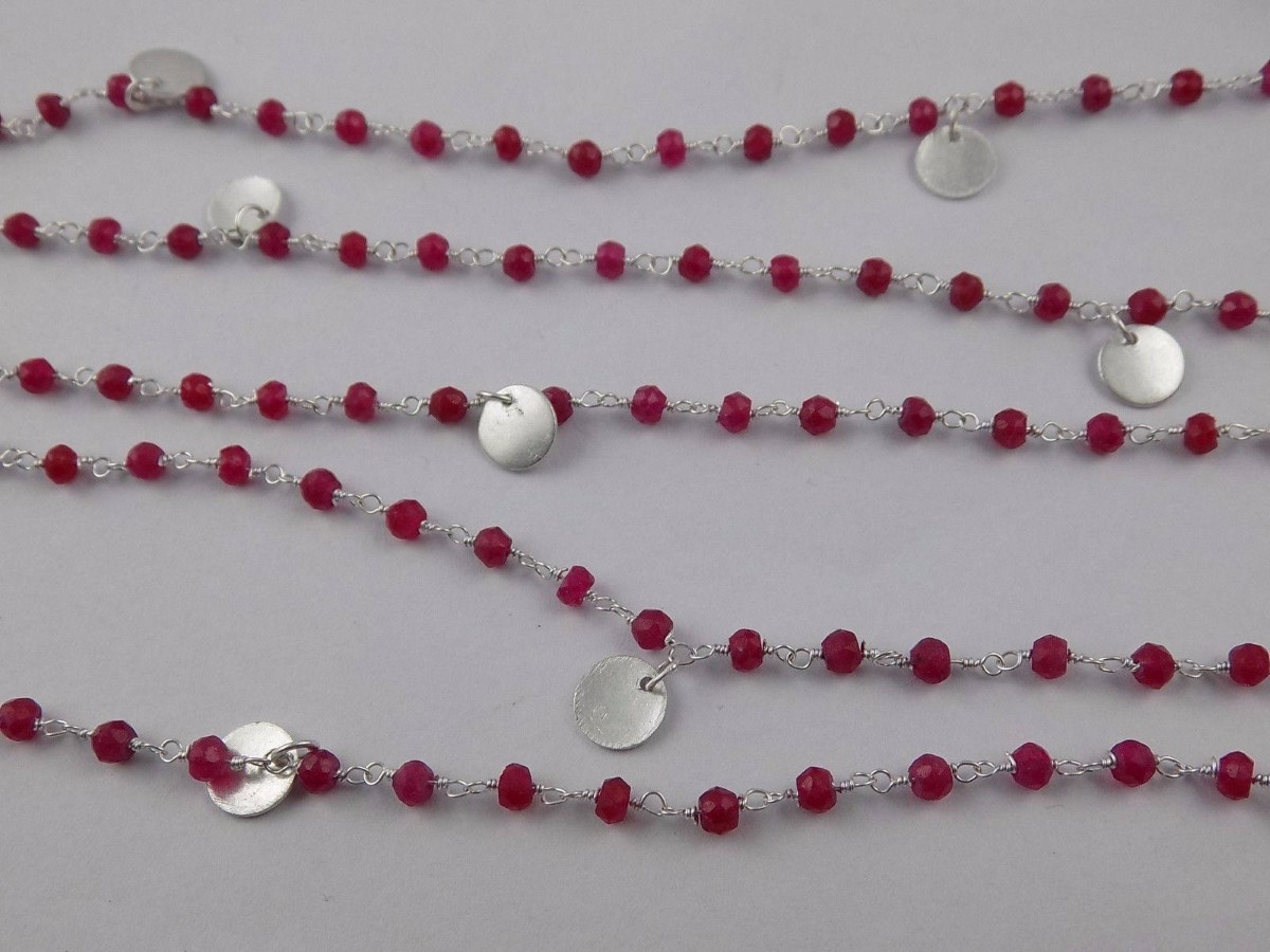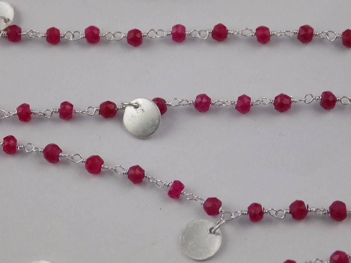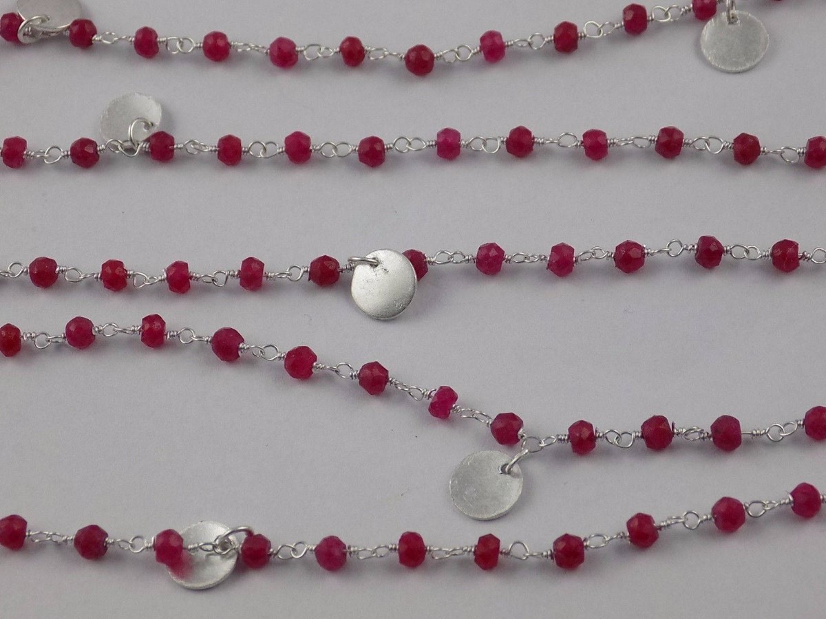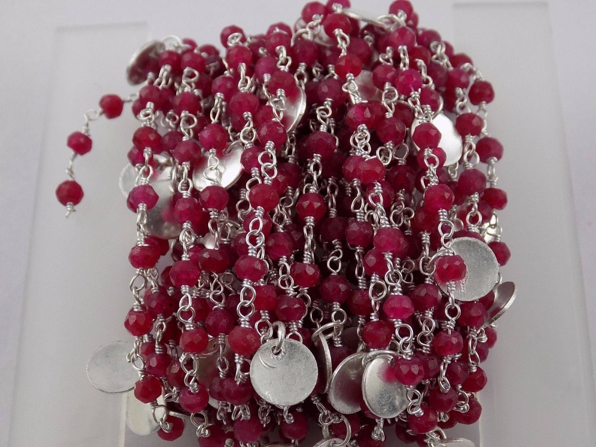At a Great Price3 Feet Aventurine Ruby Round Charm Rosary Style Beaded Chain 925 Silver Plated - Beads Measure 3-4mm