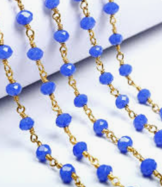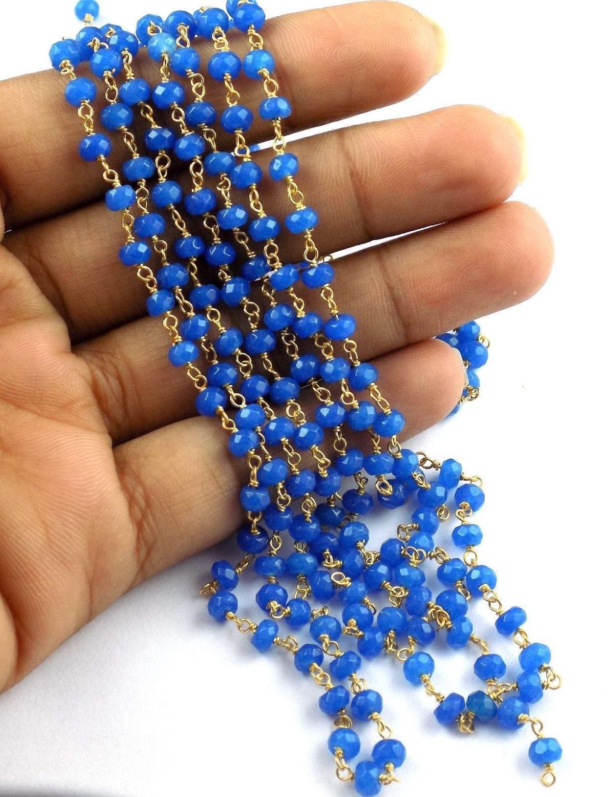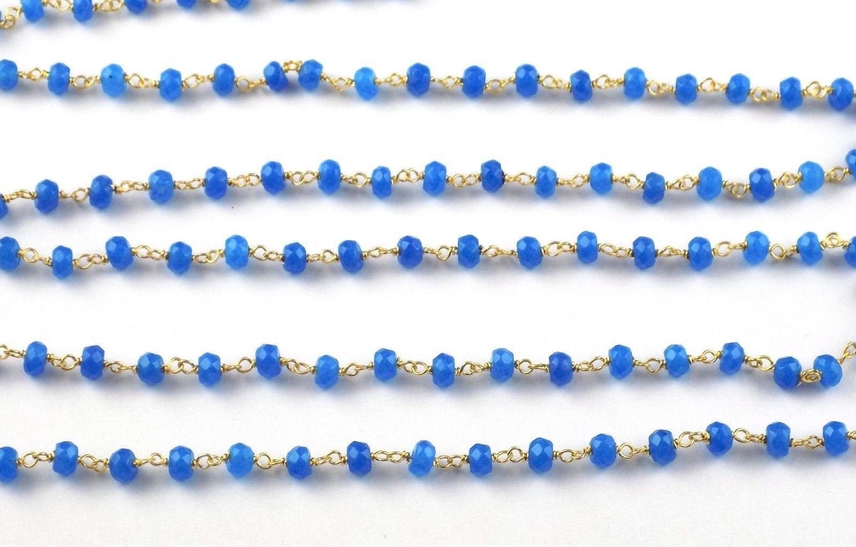 At a Great Price3 Feet Blue Chalcedony Gemstone Faceted Size 4mm 24k Gold Plated Rosary Chain