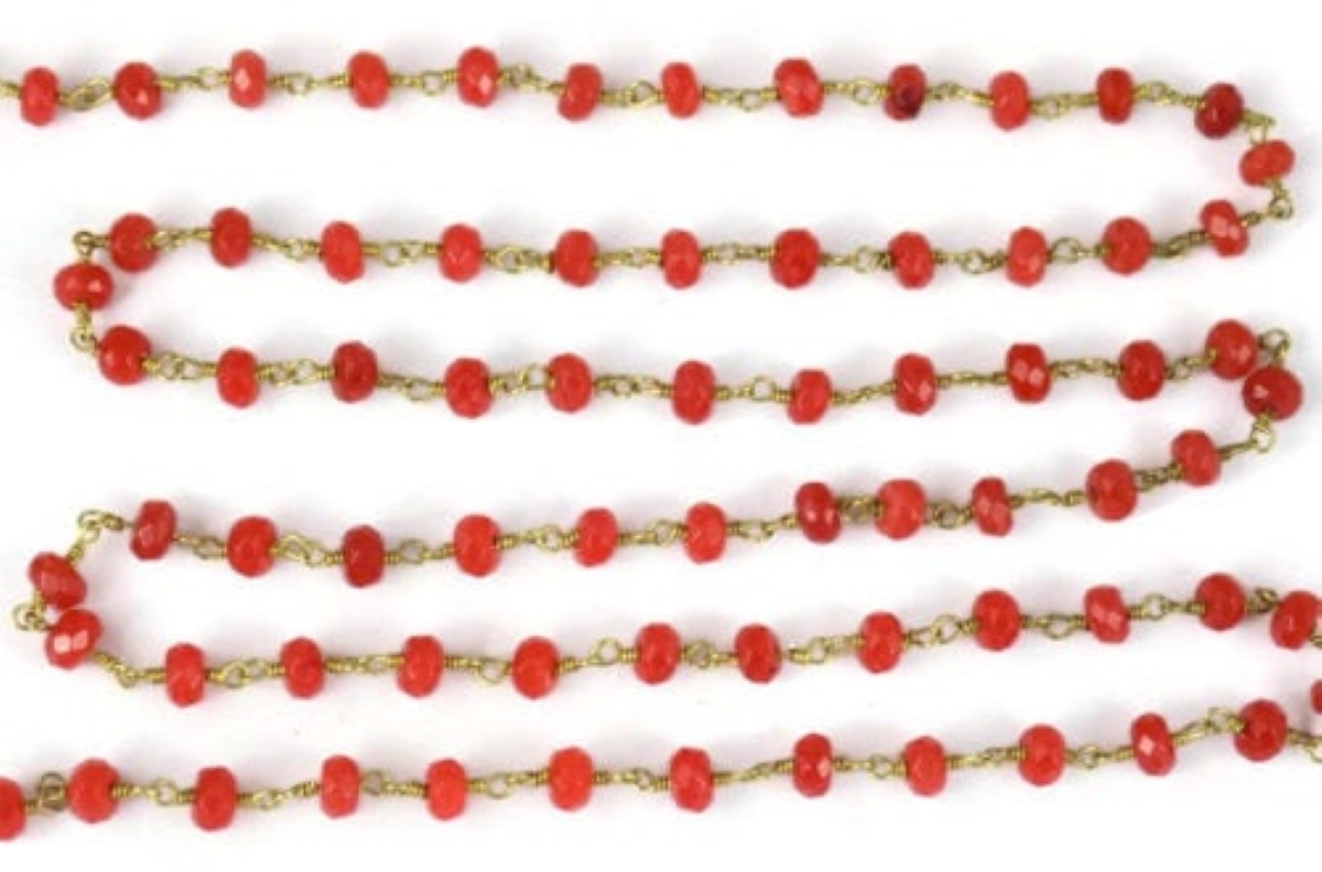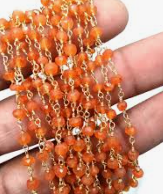Carnelian Chalcedony Beaded Chain 4mm | Faceted Rosary 24k Gold Plated