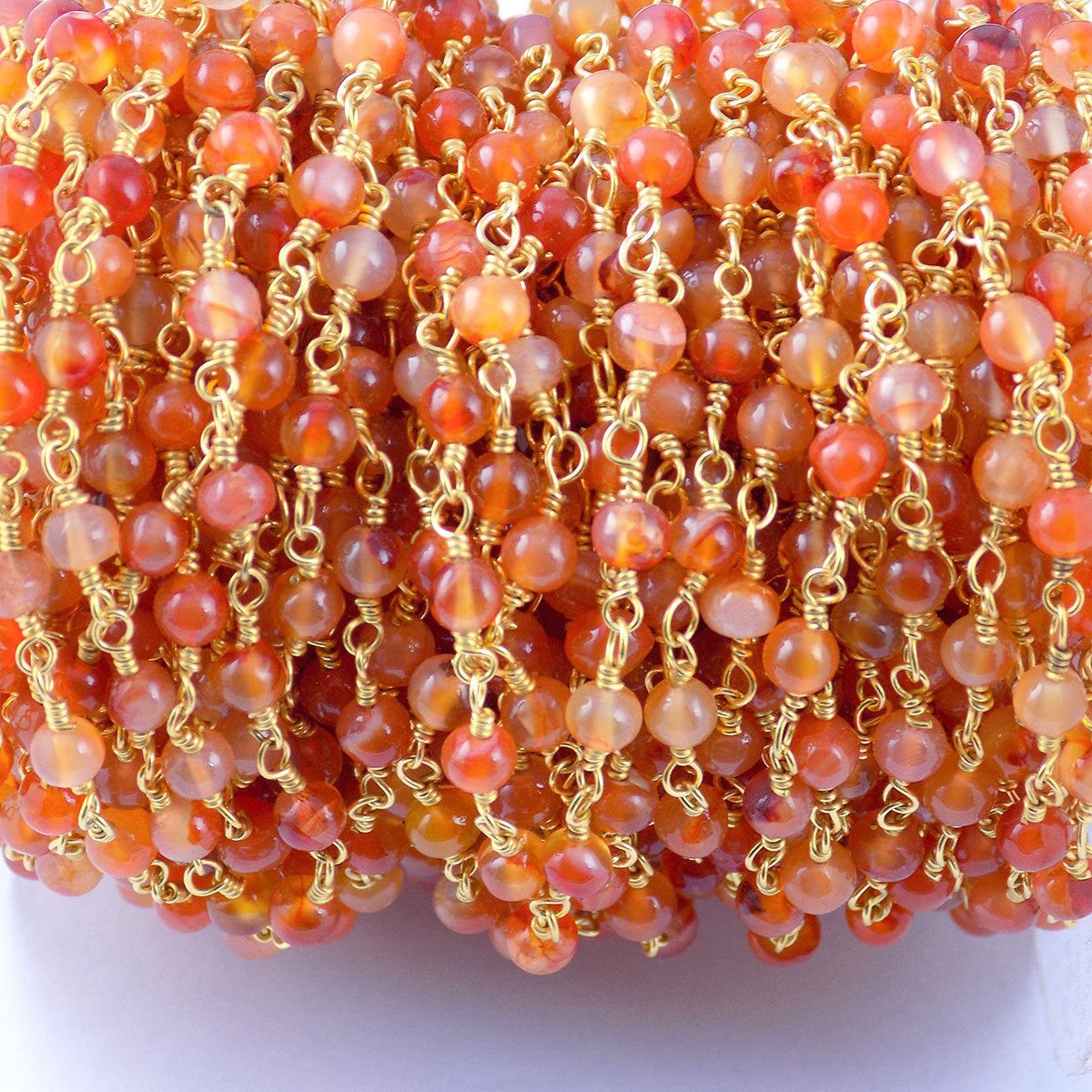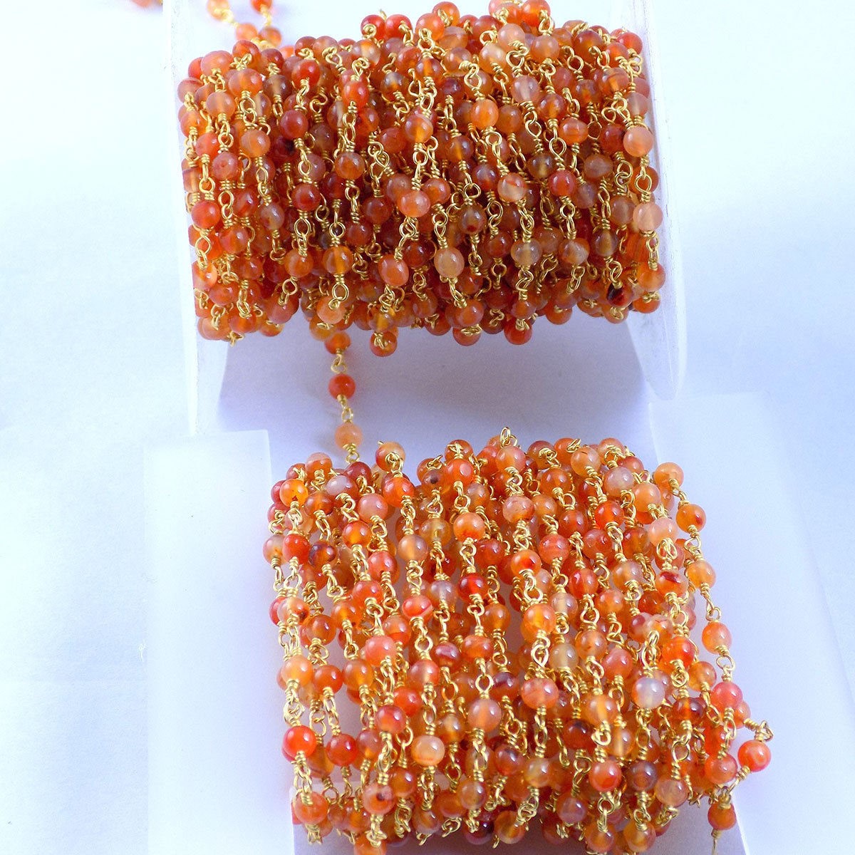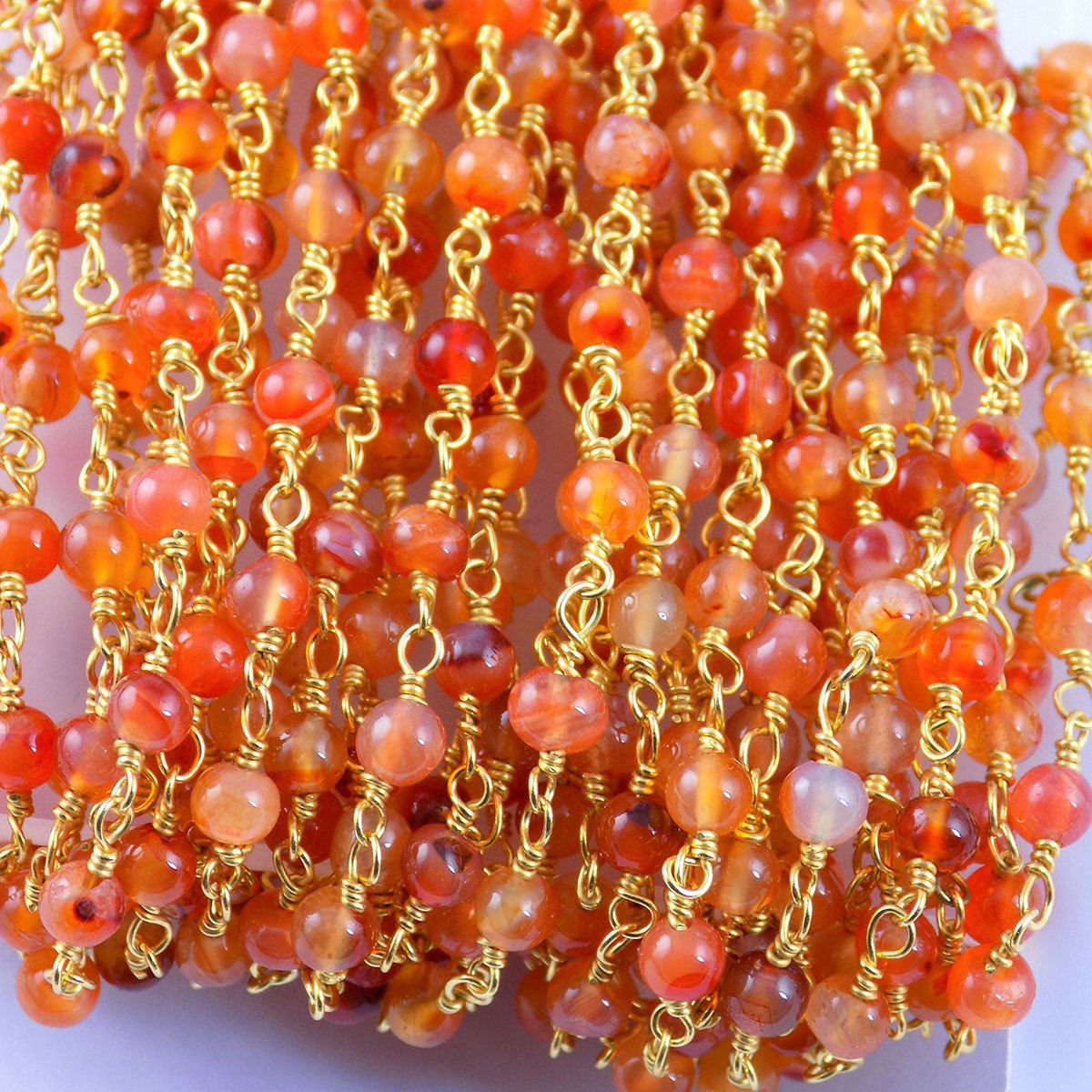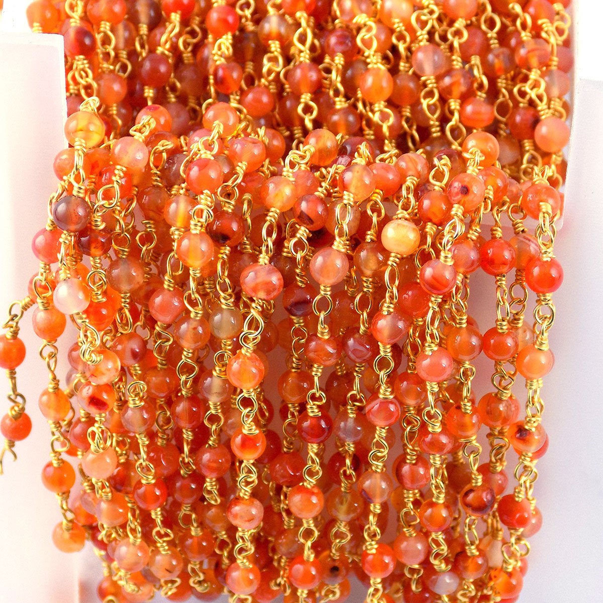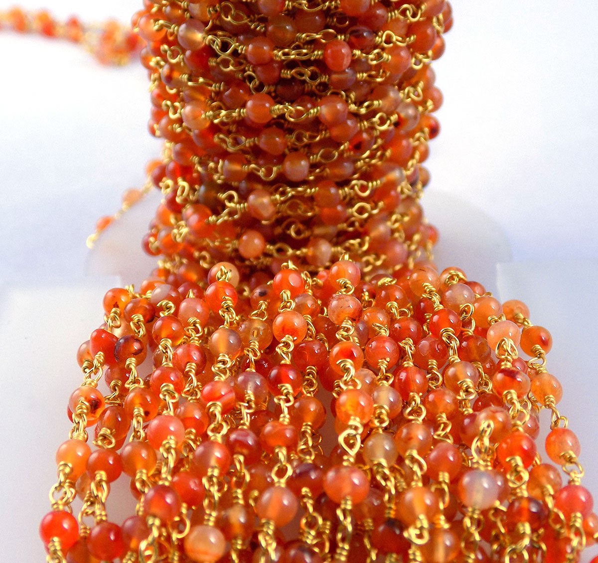 At a Great Price3 Feet Carnelian Smooth 24k Gold Plated Gemstone Faceted Rosary Beaded chain 3.5-4mm