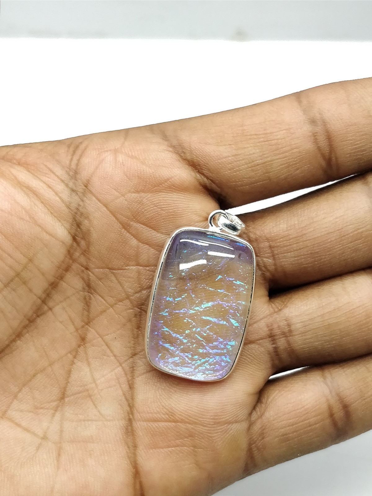 At a Great PriceFestival Session Synthetic White Blue Fire Opal Pendant 34x20x8 mm, Rectangle & Smooth wt. in 45 Ct. Use for All type Necklace. MG85