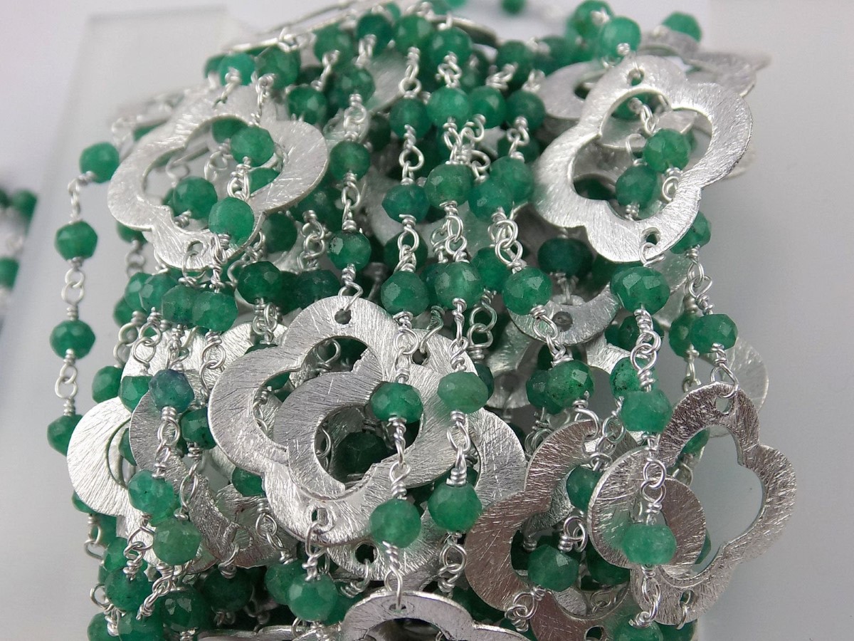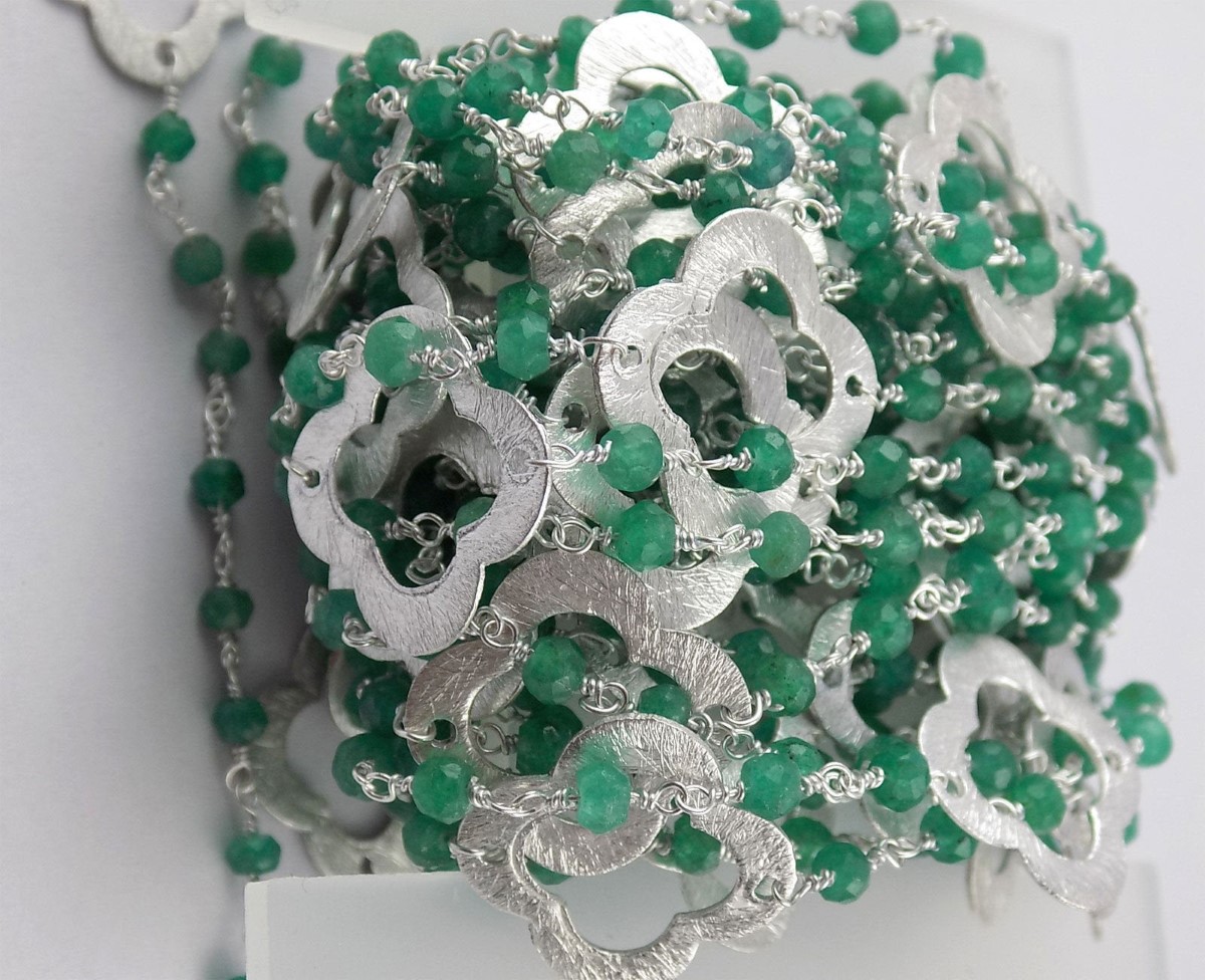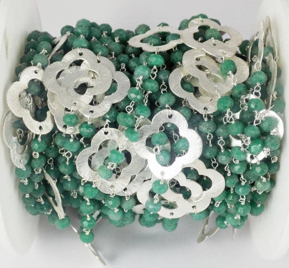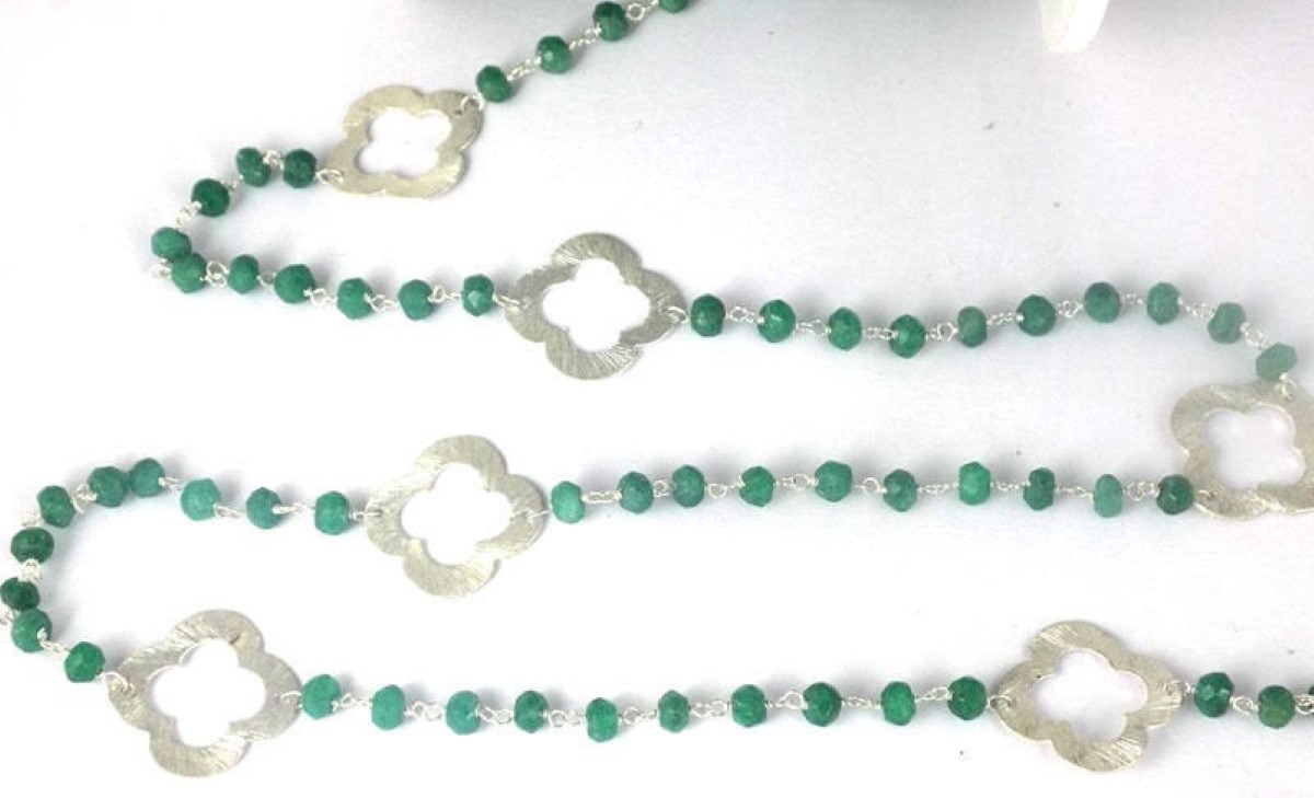 At a Great Price3 Feet Natural Green Aventurine Clover Charms 925 Silver Plated 3.5-4mm Faceted Rondelle Gemstone Rosary Beaded Chain