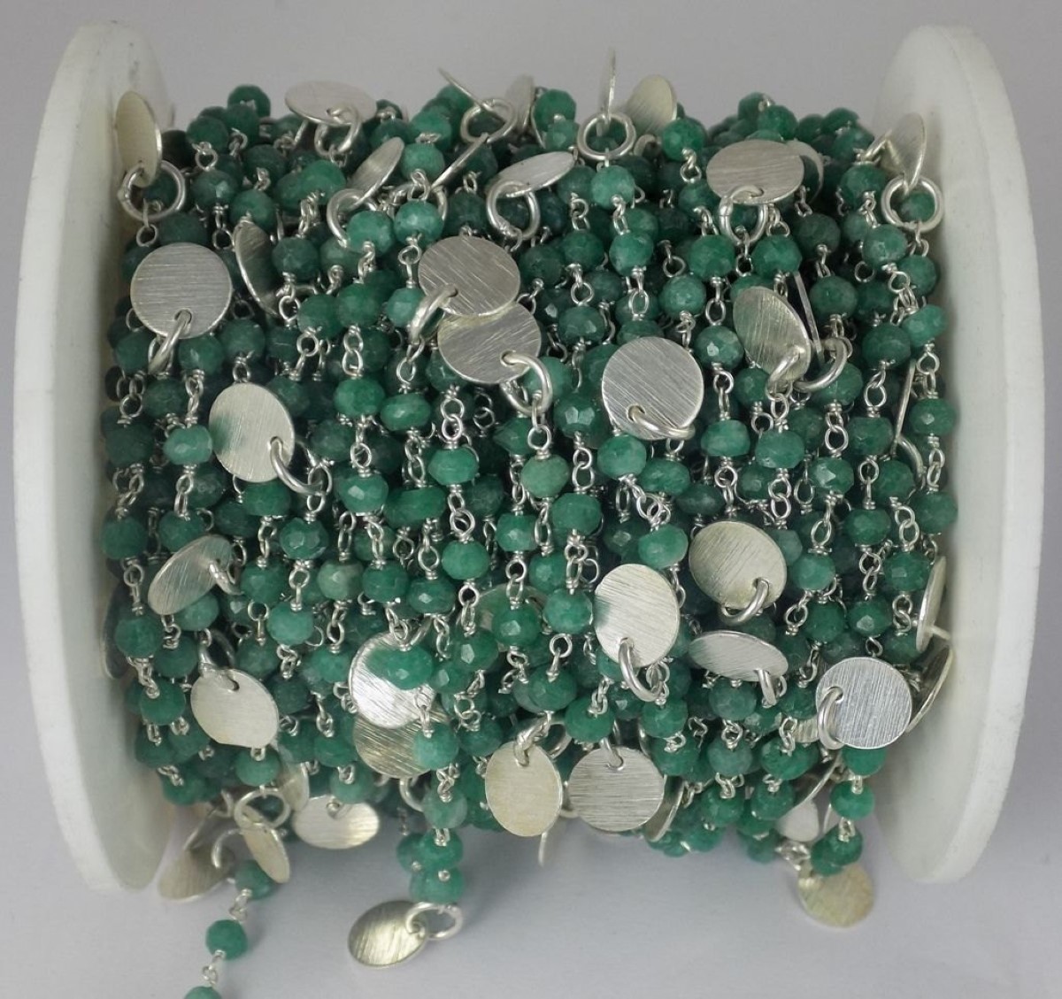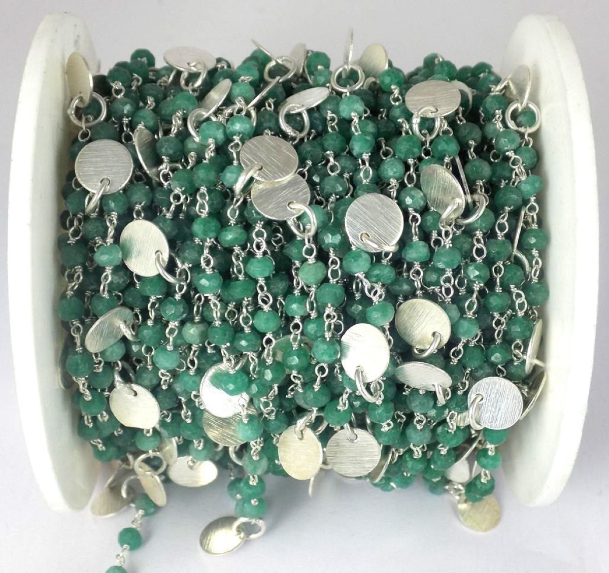 At a Great Price2 Feet Green Aventurine Round Charm Faceted Gemstone Beaded Chain 925 Silver Plated 3.5-4mm