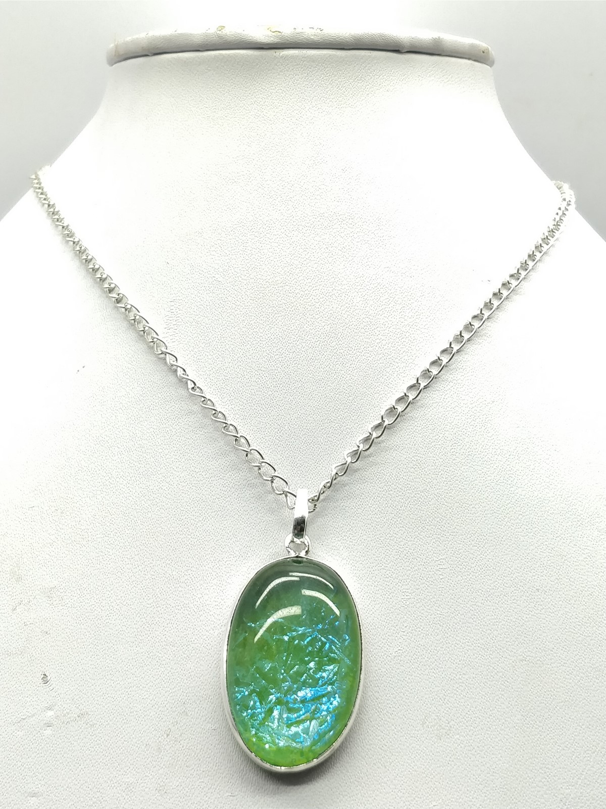 Shop Green Blue Fire Opal Pendant 40 Ct | Oval & Smooth Synthetic Gem