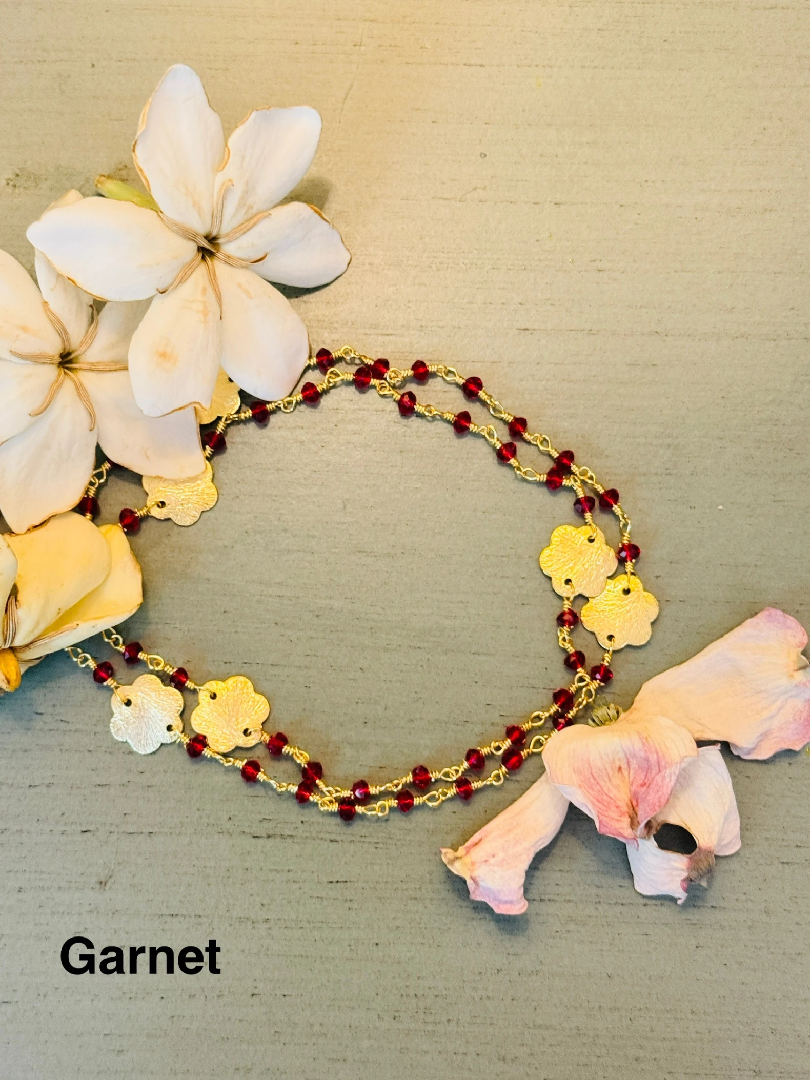 Garnet Hydro Flower Charm 24K Gold Plated Bracelet
