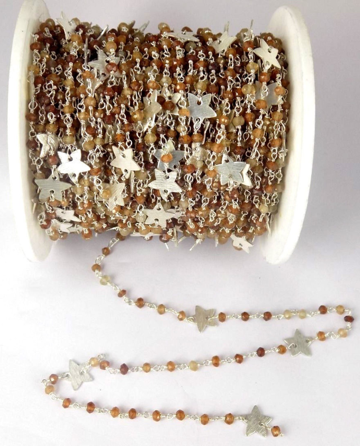At a Great Price5 Feet Hessonite Shaded Star Charm Faceted Gemstone Beaded Chain 925 Silver Plated 3.5-4mm