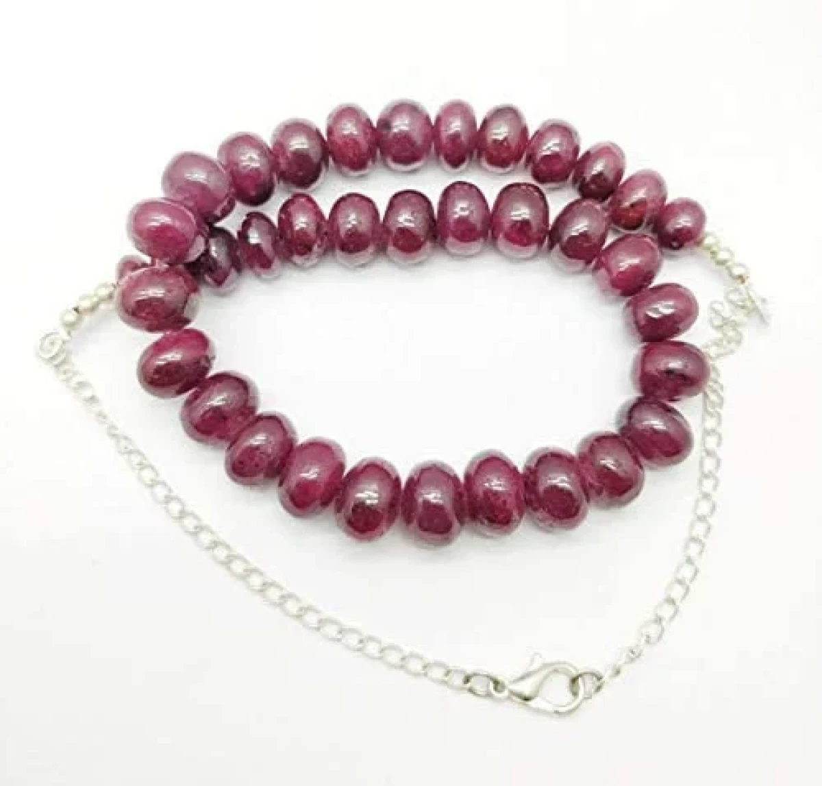 "These ruby beads are breathtaking! The color is vibrant and luxurious, and the rondelle cut enhances their natural beauty."