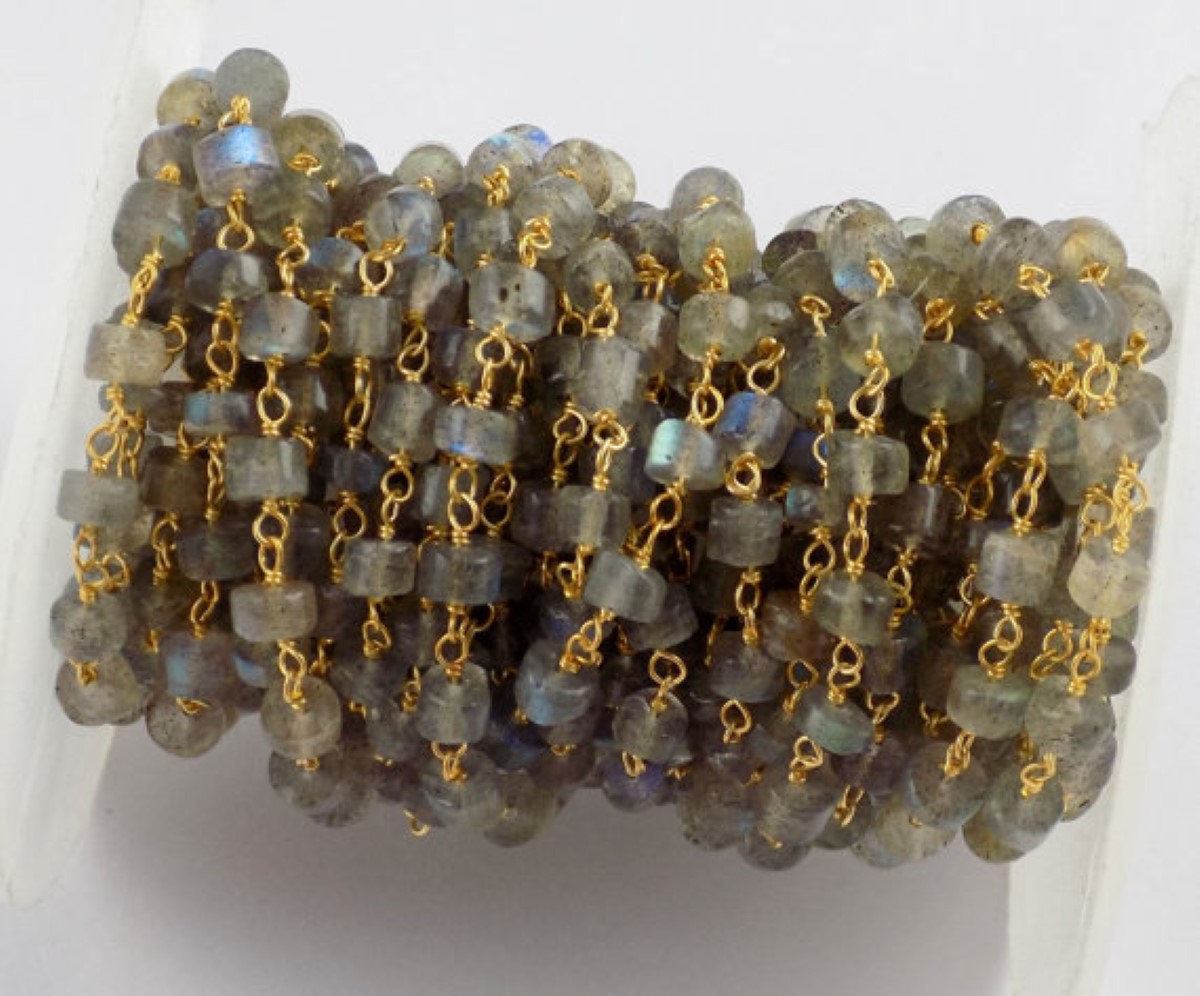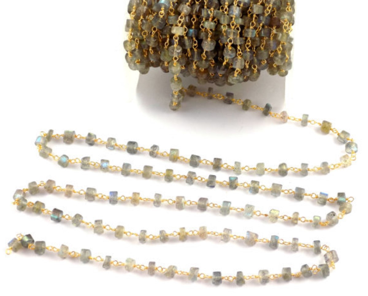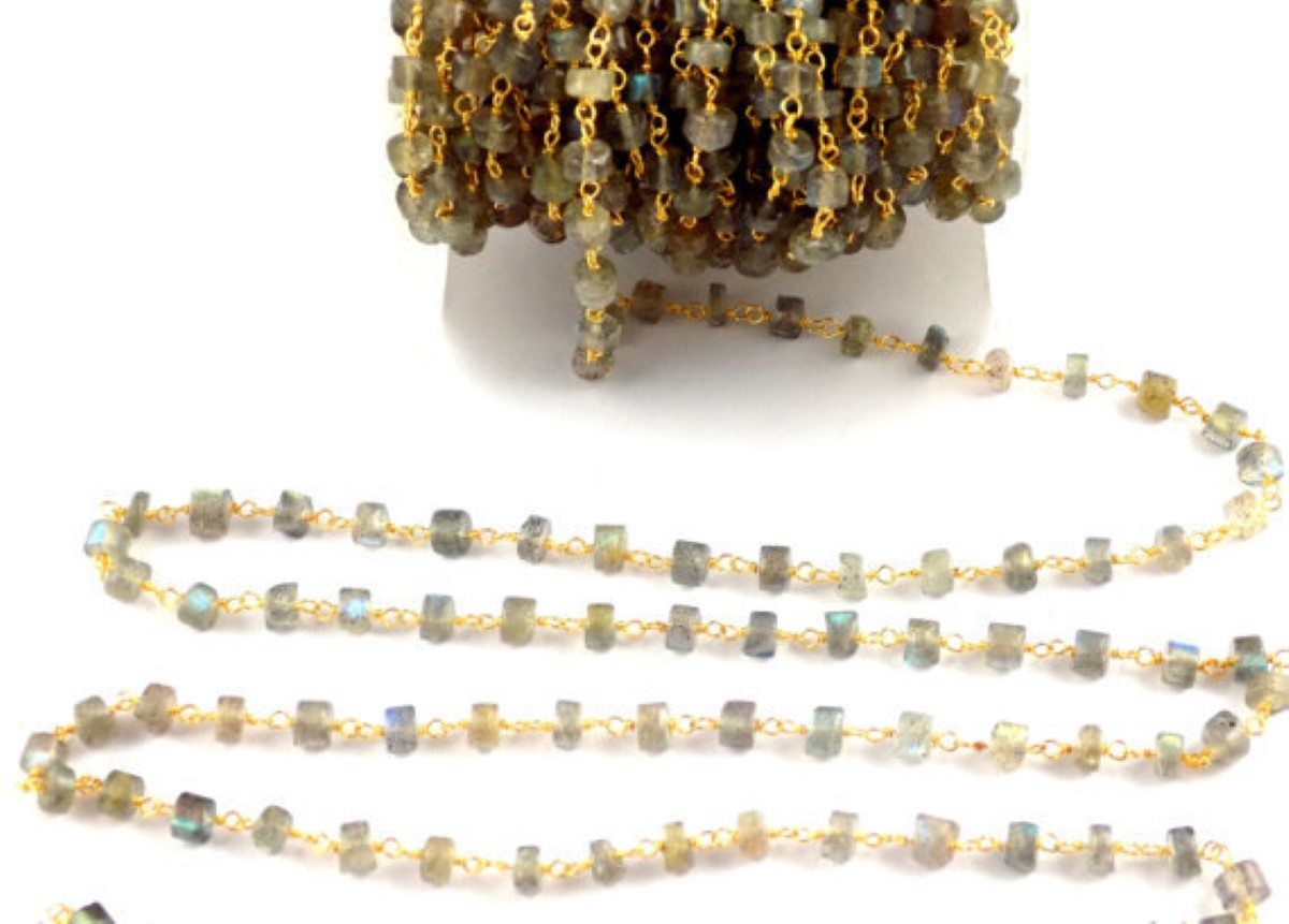 Labradorite Chain | Smooth Heishi Labradorite Beaded Chain - 24K Gold