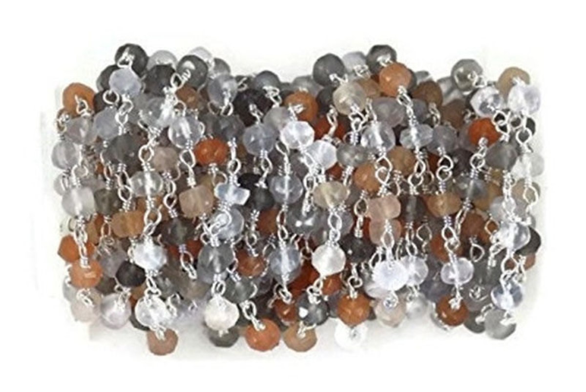 Multi Moonstone Rosary Chain | Beaded & Wire Wrapped 925 Silver Plated