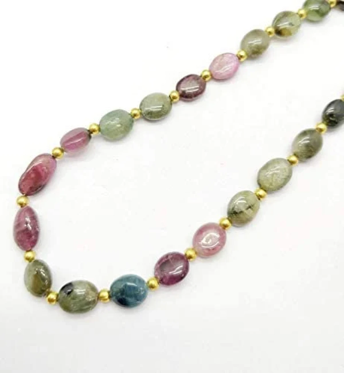 "The color variation in these multi-tourmaline beads is incredible! The smooth oval cut adds a polished finish to each bead."