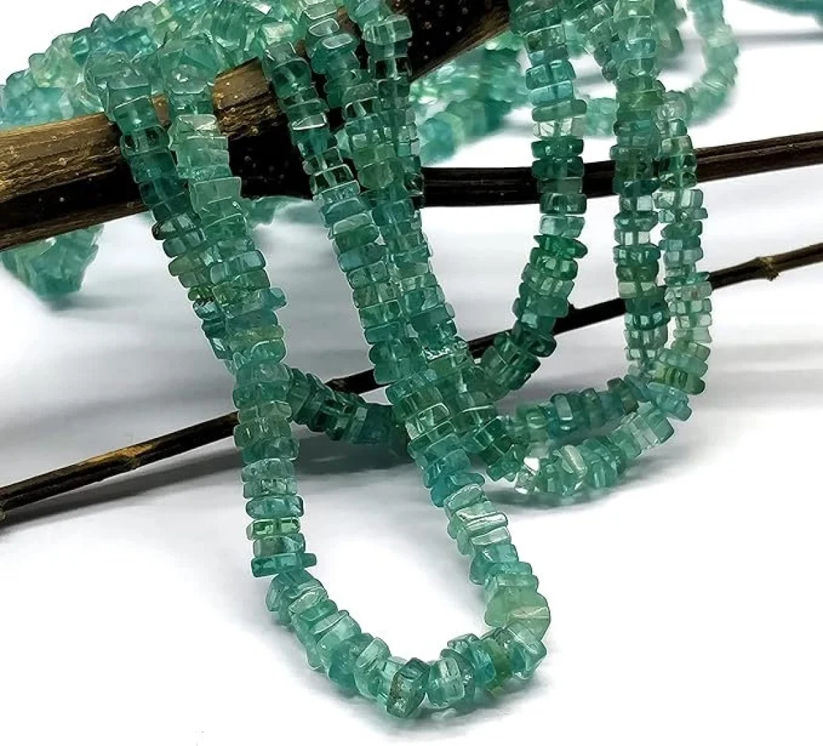 At a Great PriceNatural Apatite 4-5mm Smooth Heishi Shape Beads Square Heishi Gemstone Beads 8 inch Strand, Heishi Beads, Bracelet Earring and Necklace .