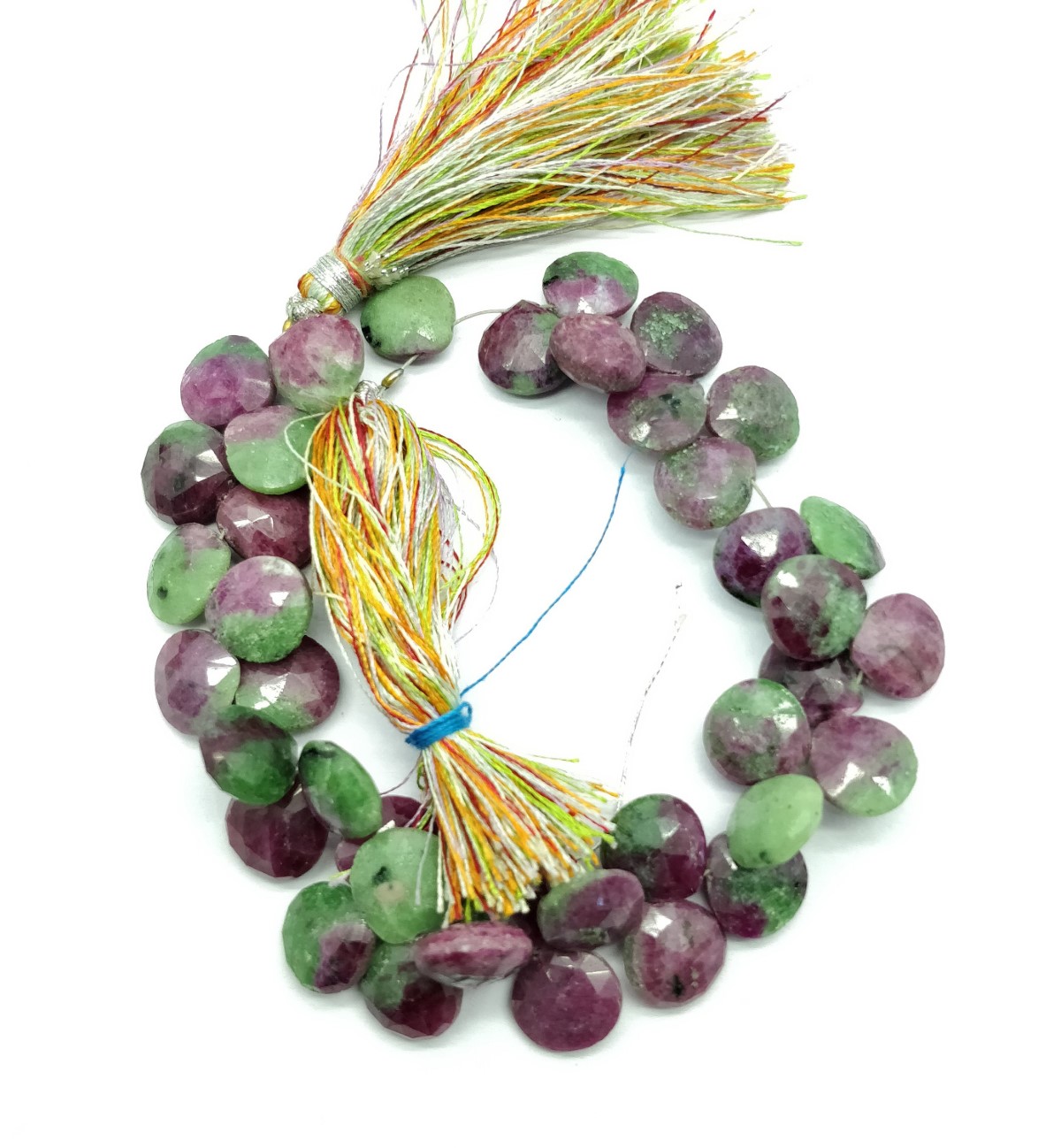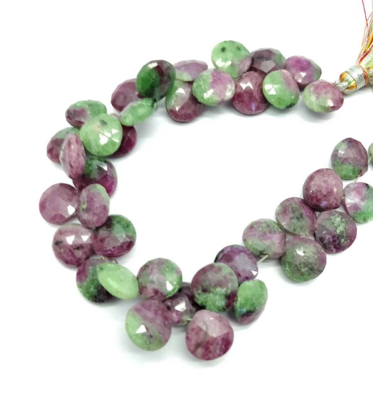 The 10x10 mm ruby zoisite heart beads are beautifully faceted, with rich colors that will make any design stand out.