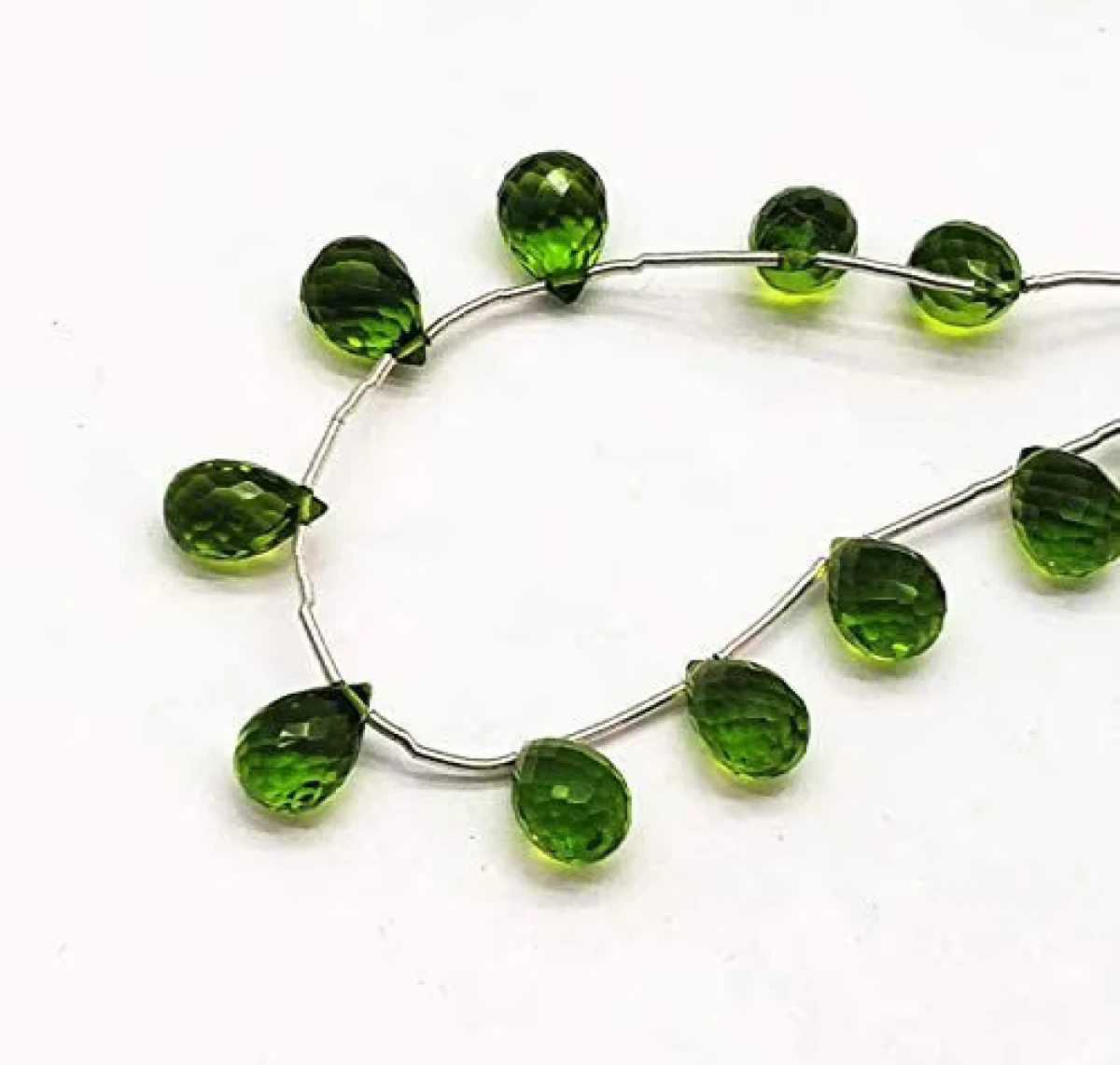 Love the color and sparkle! These 6-7.5mm peridot quartz beads with a teardrop cut are perfect for creating elegant jewelry.