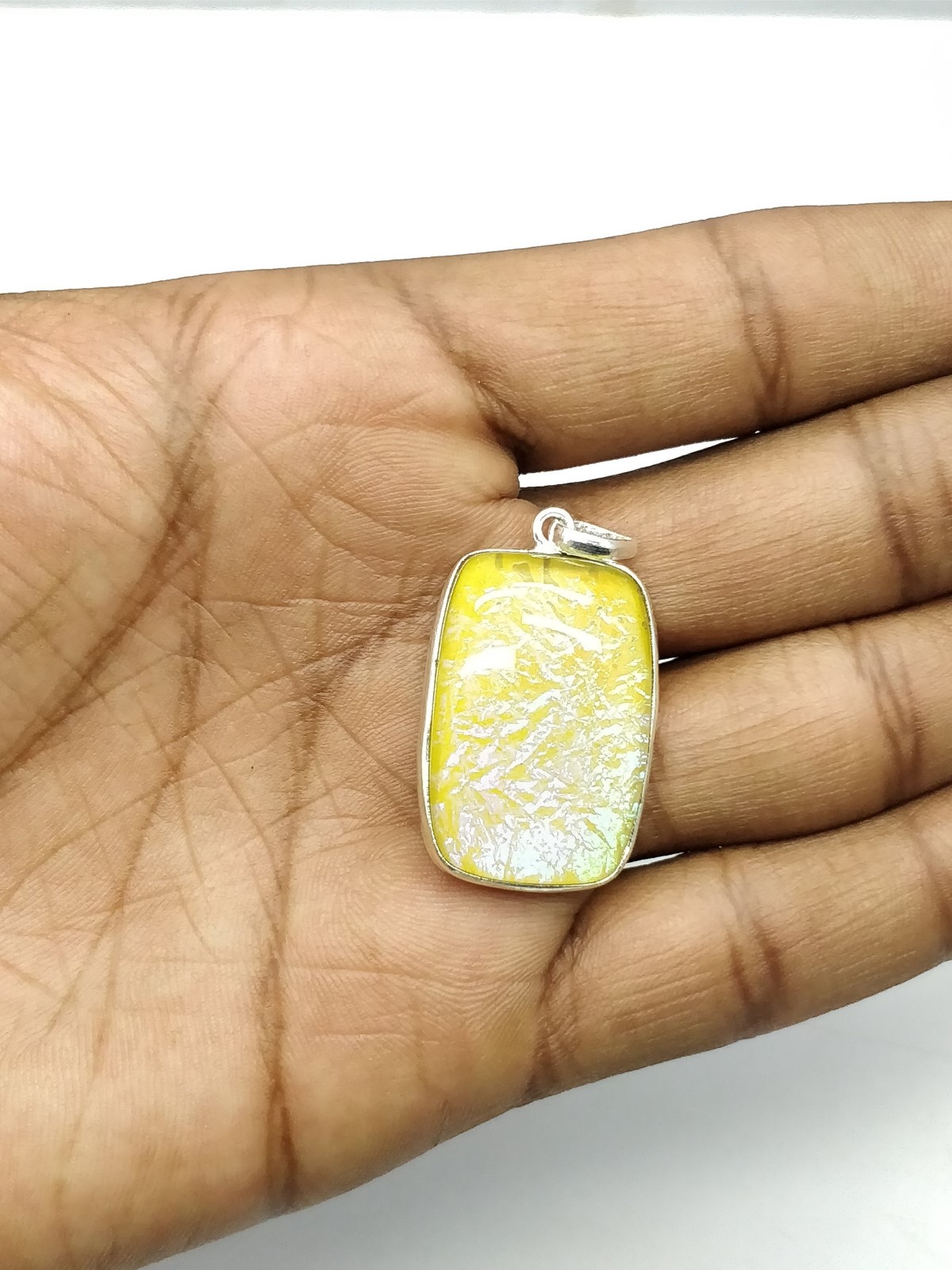 At a Great PriceAttractive AAA+++ Synthetic Yellow Rainbow Fire Opal Pendant 33x20x8 mm, Rectangle & Smooth wt. in 45 Ct. Use for All type Necklace. MG83